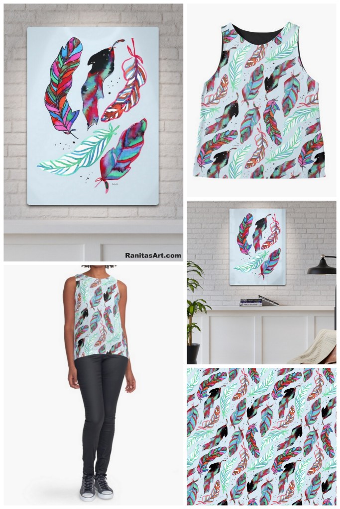 DE → In dem Video zeige ich euch, wie ich die Federn gemalt habe, und hinterlasse euch einige Fotos und Links, damit Ihr sehen könnt, wie das Muster auf verschiedenen Produkten aussieht.