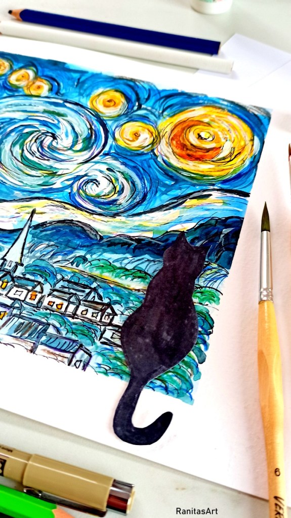 DE → Das ist definitiv einer der Malereien, die ich auf meinem Kanal haben wollte. Ich habe ein Video vorbereitet, in dem ich euch Schritt für Schritt zeige, wie Ihr „Die Sternennacht“ von Van Gogh mit Wasserfarben anmalt. Das Werk ist ursprünglich in Öl gemalt und wurde 1889 von Vincent Van Gogh gemalt.