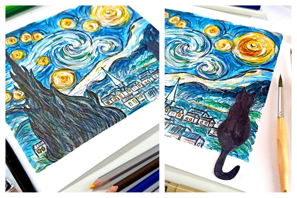 EN → This was definitely one of the paintings I wanted to have on my channel. I prepared a video where I show you step by step how to paint «The Starry Night» by Van Gogh with watercolors. The work is originally painted in oil and was painted by Vincent Van Gogh in 1889.