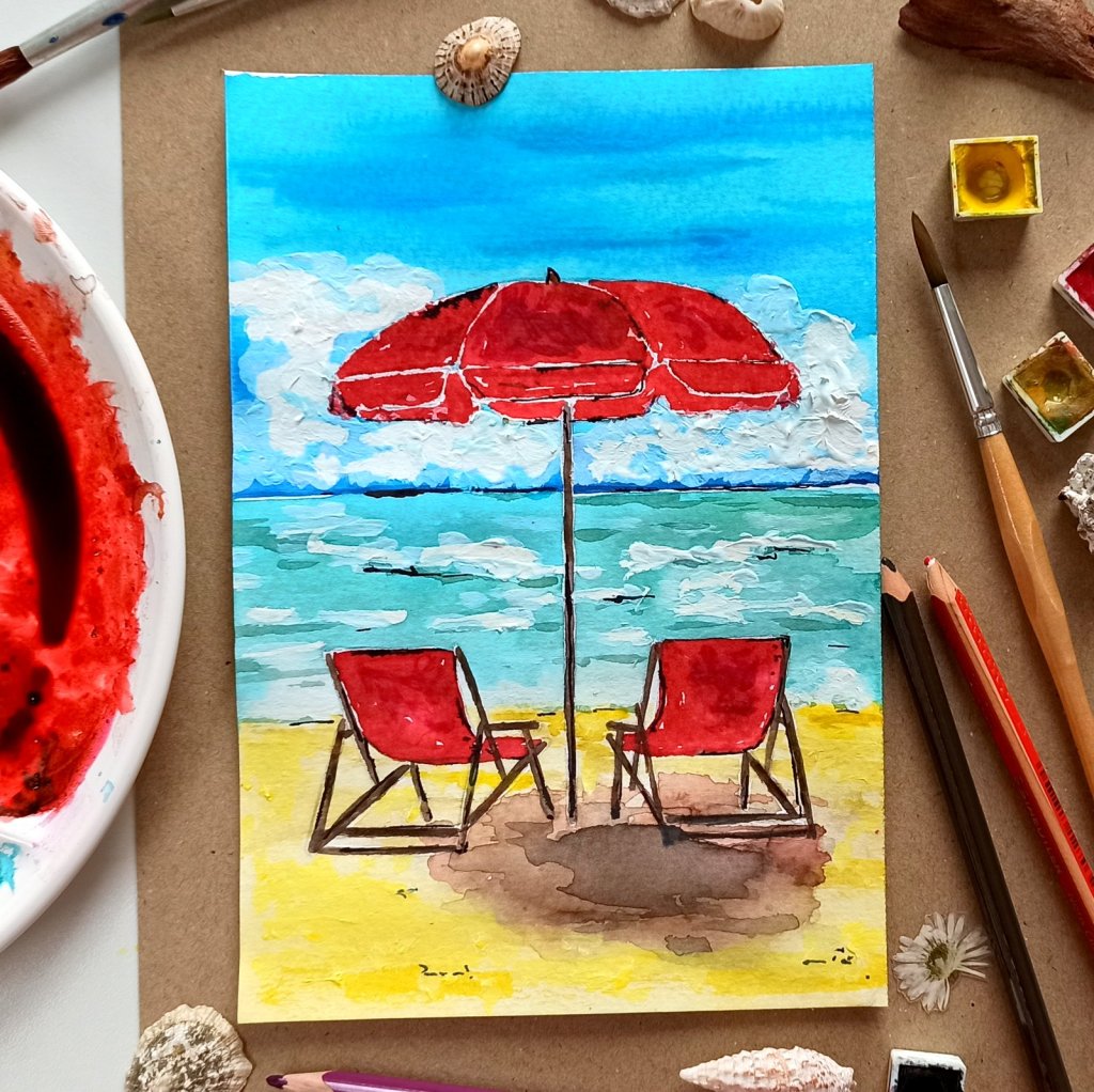 EN → in today’s post I show you how to paint a beach landscape with watercolors, acrylics and ink. A simple work to do, ideal for summer vacations.