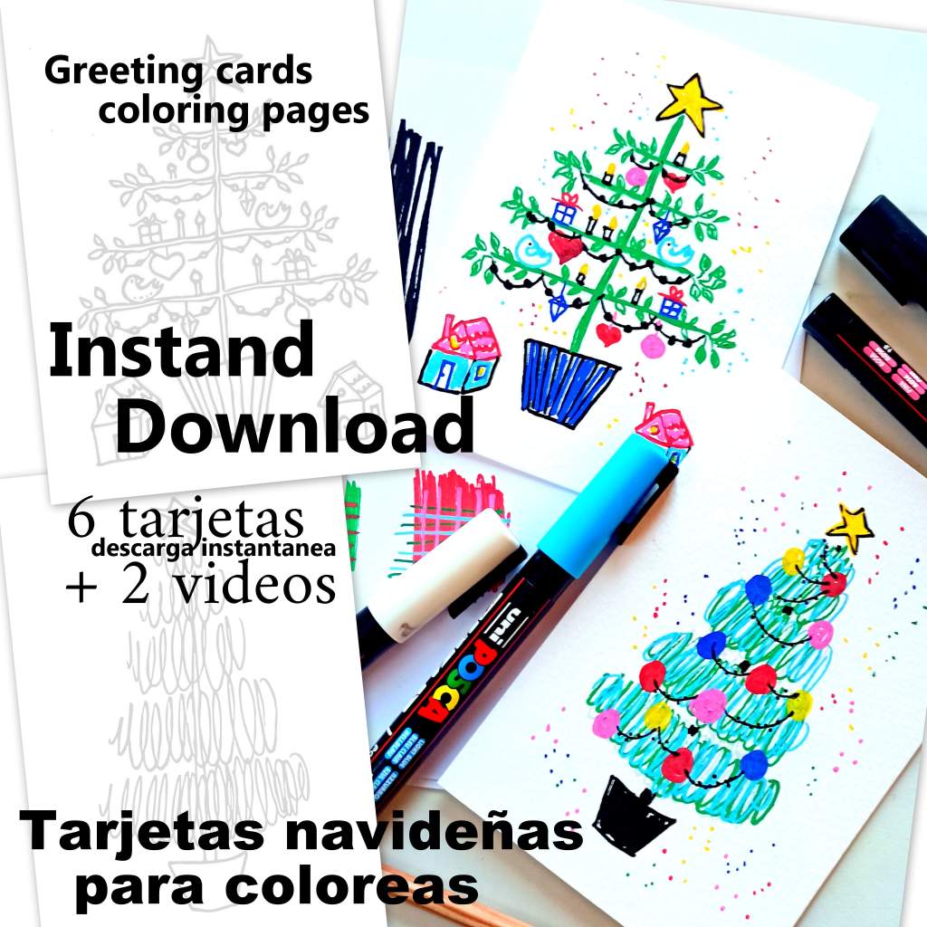 En el video les muestro como pintar 2 hermosas tarjetas navideñas. Los descargables están disponibles en mi tienda ETSY. Es una collección de 6 tarjetas, porque las agregue al conjunto del año pasado donde también hay un video paso a paso como pintarlas, pero con acuarelas.