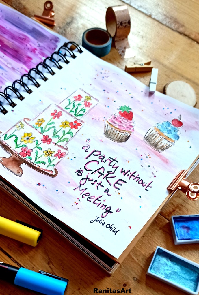 Estas son las 2 páginas que les muestro como pintar en el video. Elegí una frase de la película de Julia Child. Muy linda película basada en una historia real. Me encanta la pasión que siente Julia por la cocina.
