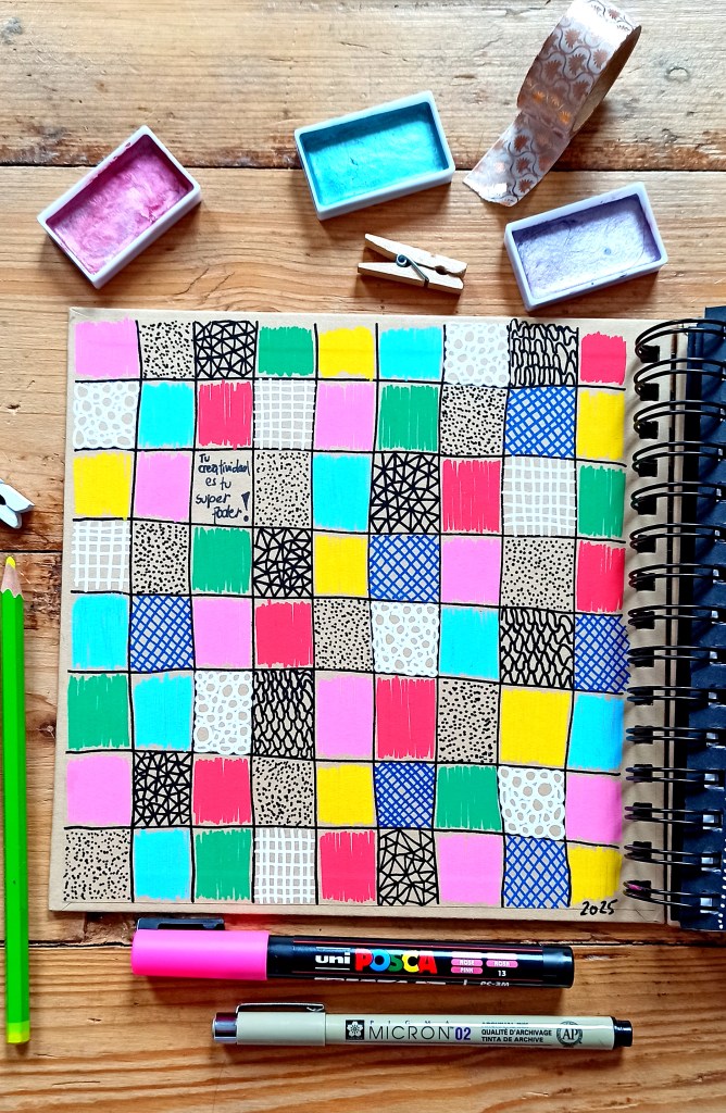 Cuando pinto esta especie de doodles sencillos, pero a la vez tengo que concentrarme para que los colores y los patrones queden equilibrados, la mente se desconecta de la vida cotidiana y se centra en rellenar correctamente el bloque con colores y patrones.