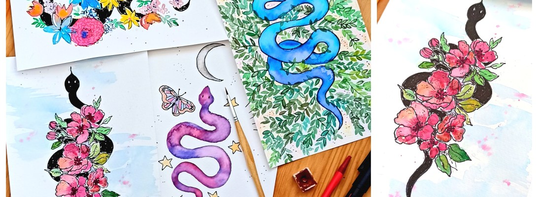 Si no quieren crear sus propios bocetos les dejo el decargable para que puedan pintar las mismas serpientes que se ven en el video. Recuerden que es importante imprimir los bocetos directamente sobre papel para acuarelas. Las impresoras de hogar dejan imprimir papeles de grosores hasta unos 200 gr.