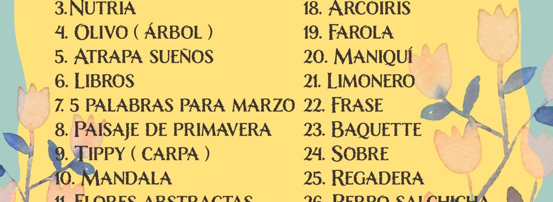 Hoy les comparto la lista de pequeños retos diarios de marzo. Una lista bien variada para debloquear la creatividad. Recuerden que pueden utilizar el medio que más les guste. Pueden compartir sus dibujos en instagram con el Hashtag #ranitasartretosdiarios o escribir un comentario en el blog.