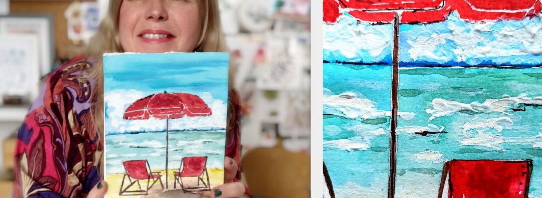 EN → in today’s post I show you how to paint a beach landscape with watercolors, acrylics and ink. A simple work to do, ideal for summer vacations.