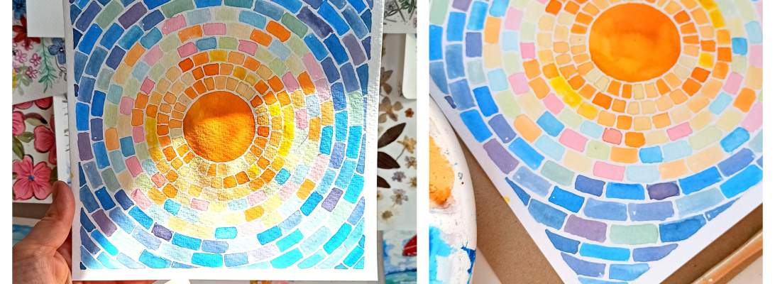 ES → hoy les traigo un tutorial muy interesante, donde les muestro como realizar mosaicos con acuarelas y elegir una paleta de colores.